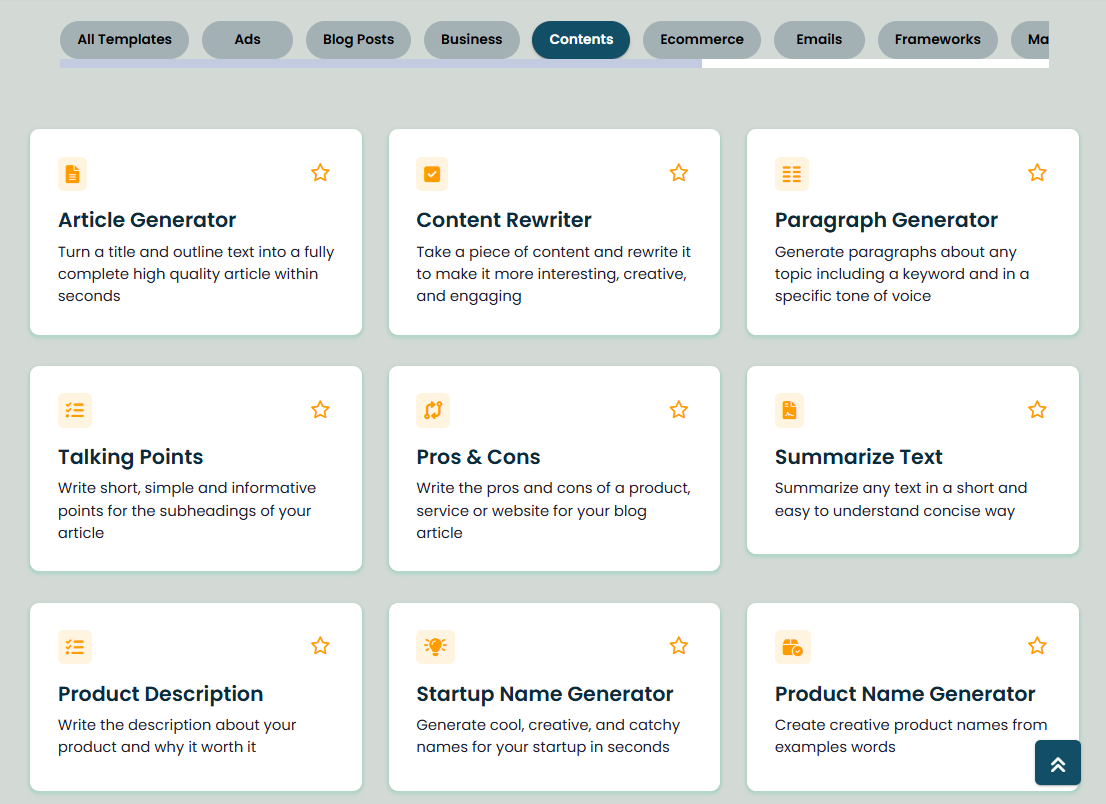 Select from our extensive range of over 70 AI tools and templates designed to analyze and create professional content